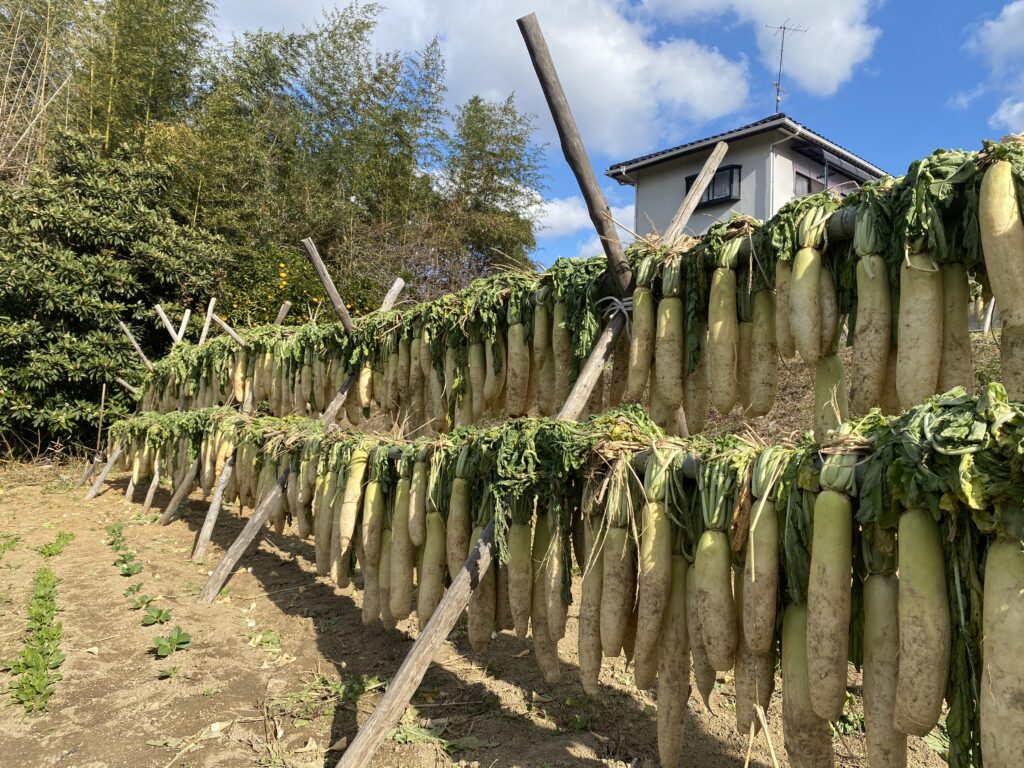 竹林のスコレーがある穂井田地域は、昔からネジ干し大根が名物だったそうです。