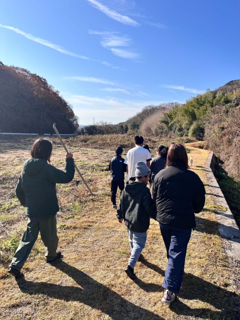 冬の青空の下、みんなで歩く時間。