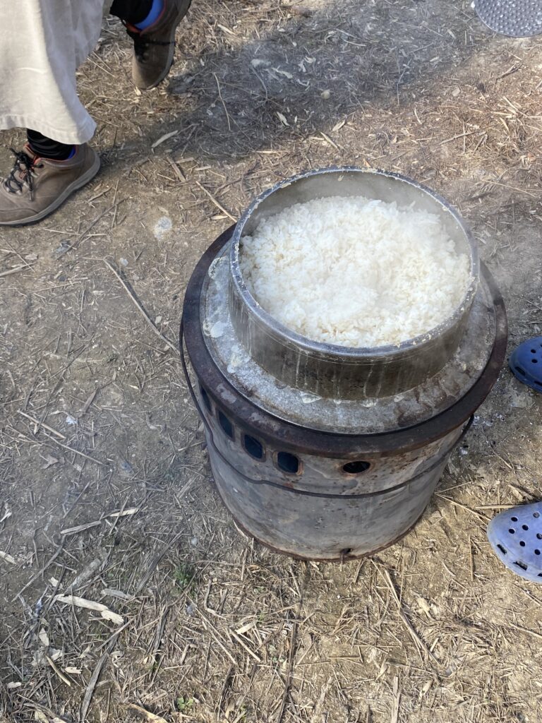 火を起こして、ご飯を炊く。