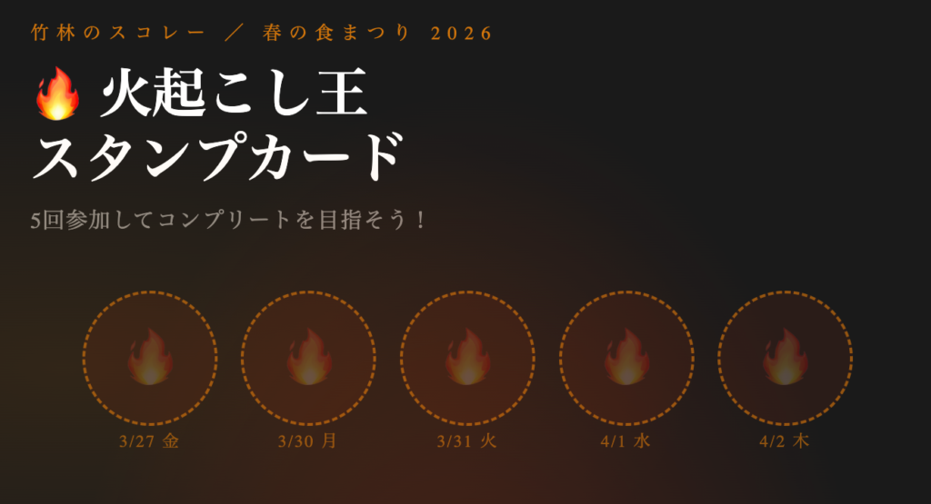🔥 5回参加すると「火起こし王」認定!