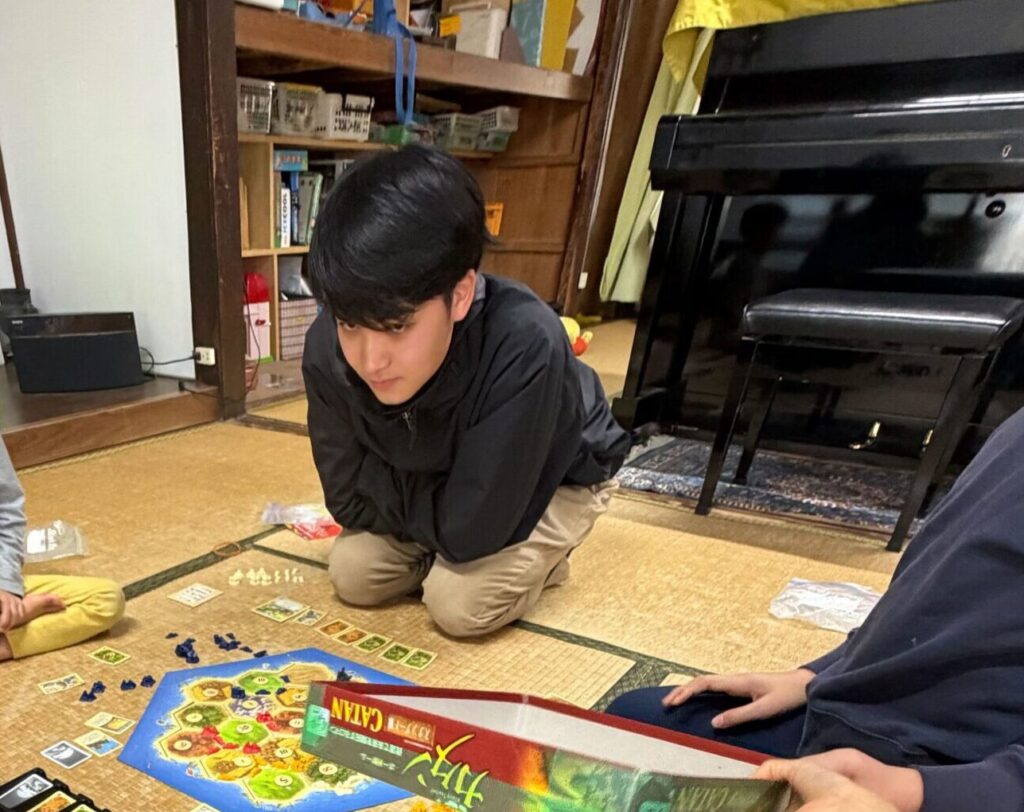 スコパ組は外で思い切り体を動かし、カタン組は室内でボードゲームに集中。