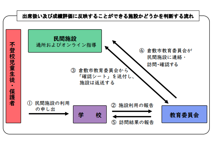 このたび、倉敷市教育委員会において、民間のフリースクール等での学びを在籍校の「出席扱い」とする仕組みが導入されました。